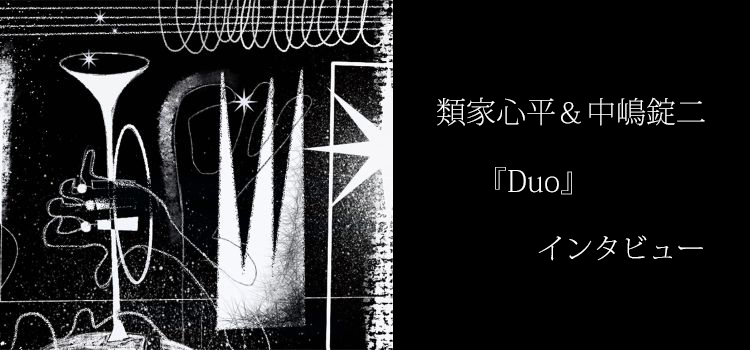 ![]() 2020年春、まだ新型コロナウイルスの影響が始まったばかりの頃、Cheer Up!のご常連であるトランぺッターの類家心平さんにはRS5pbのニューアルバム『RS5pb』についてインタビューさせて頂きました。それから3年。約1年前にリリースした中嶋錠二さんとのデュオアルバム『Duo』のこと、いま考えていること、2023年の展望。いろいろなことをお伺いしました。 ぜひ『Duo』を聴きながら味わっていただきたいインタビューになっています。(2023年4月) ---このアルバムをリリースすることになった経緯について教えて頂けますか? 類家:コロナ禍でお客さんの前で演奏する機会が無くなった事が一つのきっかけになってます。 今まで毎日の様に都内や横浜等でライヴをする事が日常でした。それが2020年の春くらいからまったく演奏活動が出来ない時期が続いて、この先の事や自分がミュージシャンであるという事自体も含めて色々と考えました。 そんな中で必然的に音源を残そうという思いが出てきました。人前で演奏が出来ないのであれば何か作品を残すという事を考えたという至極普通のアイデアなのですが。今迄は何となく時期が来たらアルバムという形に自分のやってきた事をまとめる様な気持ちで音源をリリースするという行為をしてきたのですが、もう少し能動的、積極的に音源を残したいなという気持ちが湧いてきました。 それと同時に東京から地元に帰る事が中々難しい状況下に置かれてしまったので、東京と自分達の繋がりをもう一度取り戻したいという思いが湧いてきました。 この二つの思いを実現する為に自分たちの地元、青森県八戸市でレコーディングしてアルバムを作ったら良いのではと考えました。 ---レコーディングは2021年8月に八戸南郷文化ホールで行われたとのこと。 観客もいらしたのでしょうか?当日の様子や印象に残るエピソードなど教えて頂けますか? 類家:観客は入れておりません。無観客で行いました。 レコーディングスタジオとは違い解放感やホールならではの響きを感じながら演奏出来たのが良かったです。 今回はプロデュースしてくれたのが僕らの昔からの音楽仲間で、地元でカフェや音楽活動をしている友人達でした。ジャケットも友人に描いてもらっていてレコーディングエンジニアも地元の友人にやってもらいました。たまに小学校から仲の良い友人がちょっと聞きにきてくれたりとかして、とてもフレンドリーでリラックスした中でのレコーディングでした。 外に一歩出れば南郷の自然あふれる景色が広がっていてとてもリラックスした気持ちで演奏出来ました。 ---2014年にもお二人はデュオアルバム『N.40°』を発表されています。8年経ってみて、このデュオでの変化などどのように感じられますか? 類家:レパートリーも変わったしそれぞれのテクニックや表現の幅も変わってきてる様に思います。 向かっている方向性は変わる事なく一緒ではあるのですが、より深く広くなってきた様には感じます。 ---RS5pbでも共に活動されているお二人。中嶋さんとの出会いはいつ頃だったのですか? 中嶋さんについて、類家さんからみてどのようなお人柄かご紹介頂けますか? 類家:もう10年以上前だとは思いますが、最初はお互い違うバンドでの対バン企画で知り合いました。その後にとあるバンドで一緒になりプレイが素晴らしかったので最初にデュエットの編成で仕事を誘ったのを覚えてます。 その後ジャズフェスティバルに僕のバンドでの出演オファーを頂いたタイミングでRS5pbにも誘って一緒に演奏する様になりました。 Duoでもバンドでも兎に角嘘のないピアノを弾いてくれる方だなと思ってます。その時本当に彼の内側から出てきたフレーズを紡いでくれるような。そして毎回その時のベストの演奏をしてくれます。それは信頼に繋がるしやっていて楽しく刺激的です。人柄は至って穏やかですが芯がありブレない人だと思います。 ---今作はカバー曲が多いですが、オリジナルも収録されていますね。 選曲基準などについてはいかがですか?お二人で話し合ったのでしょうか? 類家:自身のバンド(RS5pb)では破壊的な表現やアブストラクトな楽曲が多いのですがコロナ禍の影響で既に現実社会が壊れてしまっていたので、何かを壊すというよりは穏やかだったり美しかったりする楽曲に興味が出てきたのかも知れません。選曲については2人で決めています。 ---このアルバムでのアレンジについては、即興性を優先されているのか、それともお二人で話し合いながらアレンジしていかれたのでしょうか。 類家:大体の曲がレパートリーとしてライヴで演奏している曲なのでとりあえずレコーディングしてみてよかったらOKテイクで、どこか腑に落ちなければ少し相談してもう一度トライするという感じです。アレンジも即興性もどちらも大事にはしてますが、その場の閃きや出てきたアイデアの方が重視されているような感じもあります。 ---ここからは、一曲ずつお伺いいたします。 ◆1.Blue Mi