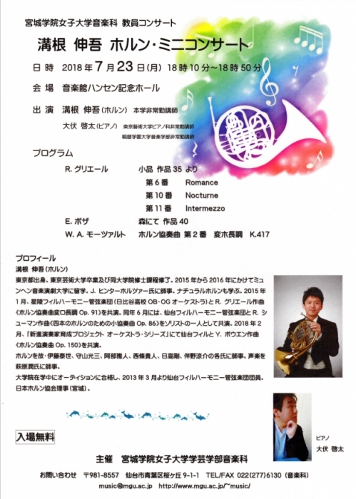 ![]() 「オーケストラの響き」と題して、オーケストラの団員にご登場頂きオーケストラでの生活や音楽人生についてじっくりお伺いする新しいインタビュー企画、第二回目のお客様は仙台フィルハーモニー管弦楽団ホルン奏者 溝根伸吾さんにご登場頂いた。 溝根さんは2013年に仙台フィルハーモニー管弦楽団に入団。若手メンバーとしてオケを盛り上げることにも一役買っている。Twitterでいつも楽しげに仙台フィルの情報を発信なさっている溝根さんってどんな方なんだろう?とずっと気になっており、今回はオーケストラや教えるお仕事のことはもちろん、音楽人生、読書・ピラティスなど趣味のお話、おすすめのクラシック曲までたっぷりとお伺いした。溝根さんの魅力をぜひ知って頂きたいと思う。(2018年7月) ---2013年に仙台フィルハーモニー管弦楽団(以下:仙台フィル)に入られたそうですね。その前はどこか別の楽団に入っていらっしゃったのでしょうか? 溝根:2013年3月まで大学院生をやっていて、2013年3月に仙台フィルに入団しました。 学生生活と一ヶ月かぶってるんですよね。大学3年生からいろんなオーケストラのオーディションを受けていて、10楽団ぐらい受けまくってやっと入れた!みたいな感じです(笑)。 ---それまで仙台にいらしたことは? 溝根:いとこが昔仙台に住んでいたので遊びに行ったり、入団前にエキストラで仙台フィルで演奏したり、何度か来ていましたね。 ---仙台フィルに入って、この5年間を振り返ってみていかがですか? 溝根:入って良かったなーと思います。仙台フィルはすごくアットホームな雰囲気で和気あいあいとしつつも、真面目にひたむきに音楽に取り組んでいる人ばかり。最近若手が増えてきて、みんなで楽しくつるんだり・・・すごく楽しいです。 ---仙台フィル以外に、学校の吹奏楽部を教えるお仕事もされているそうですね。 溝根:そうですね、学生時代から教えに行ってるところもありますし、僕の高校の後輩が音楽の先生をやっていてそれで教えに行くようになったところもあります。 頻度はまちまちですが、東京・仙台あわせて5〜6校ぐらい教えてますね。 ---宮城学院女子大学でも教えていらっしゃるとか。 溝根:はい。ちょうど今も宮城学院でのレッスンを終えてきました。ホルン専攻が2人いてレッスンしたり、今日は初めて木管五重奏など室内楽のレッスンをしました。 ---いまちょうど吹奏楽コンクールの季節ですよね。学生さんなど皆さん頑張っている時期だと思います。 吹部フレンドの皆さんにメッセージを頂けますか? 溝根:コンクールを頑張っている学校にありがちなんですけど、賞を取ることが目的になってしまって、手段が目的になっちゃってるときがあると感じます。 最初は楽器が面白そうとか、音を出してて楽しいとか、仲のいい友達がいたから入ったとか、小さい理由だったと思うんです。賞をとるために入った人というのはあまりいないと思うし・・・。 なんで自分は楽器をやってるんだろう?音楽をやってるんだろう?ということにたまに立ち返ってみるのがいいんじゃないかと、自分が指導している中でも思いますね。 ---ありがとうございます。なにごとでも初心を大事にしたいですよね・・・。 ホルンの初心者に聴いてほしい、おすすめの曲があれば教えて頂けますか? 溝根:まずはモーツァルトのホルン協奏曲ですね。 宣伝になっちゃいますけど僕が吹いてるホルン協曲の動画もYouTubeに上がっています。ナチュラルホルンで吹いています。ナチュラルホルンは昔の形をした楽器ですね。管をぐるっと巻いただけでヴァルヴがないんです。特殊な方法で演奏します。 ![]() ---ここからは溝根さんの音楽ヒストリーをお伺いいたします。 まず、4歳からピアノを習っていたということについて詳しく伺えますか? 溝根:母が音大出身で声楽専攻だったんですよ。ピアノの先生も、母が習っていた先生が近所にいらっしゃったので習いに行きましたが、嫌で仕方なかったです。 家でもまた母がピアノを教えるので、練習しないと怒られるし(笑)。 でも、大学に入るまでやってましたね。入試にも必要だったのでやってて良かったなと思います。大学でも教職課程をとっていて副科ピアノもとらなきゃいけなかったですし。 ---ホルンに出会ったきっかけを教えて下さい。 溝根:小学校5年で学校のオーケストラに入って。珍しいんですが、目黒区立の公立学校にオーケストラがあったんです。オーケストラが割と盛んで、コンクールでも東日本大会で賞をもらうようなところでした。 最初はなんとなくトランペットがやりたかったんですけど、人気なのでもう埋まっていて、空いてたのがトロンボーン、ホルン、ユーフォニアムでした。この3つのパートを2週間ぐらいで回ってみて、何を思ったのか「ホルンが吹きやすいです」と言ってホルンになりました。 ---小学校ではどんな練習をされたんですか?イベントも多かったのでしょうか? 溝根:楽器でどうこうというより